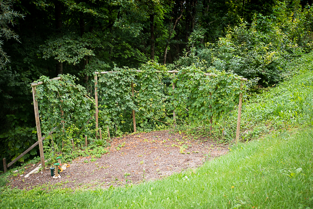 Hopfen (1) In Bayern steht dieser Spruch für eine alte Brautradition, für das Reinheitsgebot und die Geselligkeit in Gasthäusern und Zelten. Hier am Tor zu Hallertau verbinden sich daher Arbeit und Gemütlichkeit. Dabei ist das Zelt schon aus jüdischer und arabischer Tradition ein Ort des Schutzes, der Geborgenheit, aber auch ein Zeichen des Unterwegsseins. Wir sind nur Gast auf Erden und wandern ohne Ruhe mit mancherlei Beschwerden einer anderen Heimat zu. Die Bitterstoffe im Hopfen wirken beruhigend und schmerzlindernd.